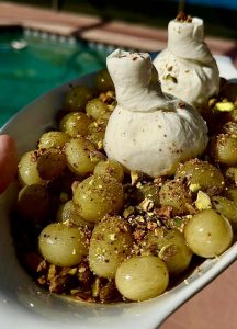 Теплый карамельный виноград и нежная, кремовая буррата – союз навеки! А с холодным белым или розе… ну вы поняли.